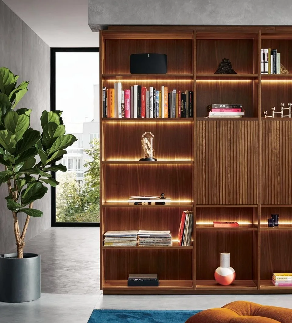 Mixing open and closed compartments is a clever way to keep your kitchen or living space organised while presenting an eye-catching storage solution. And with indirect lighting, you won't have to worry about missing any details.